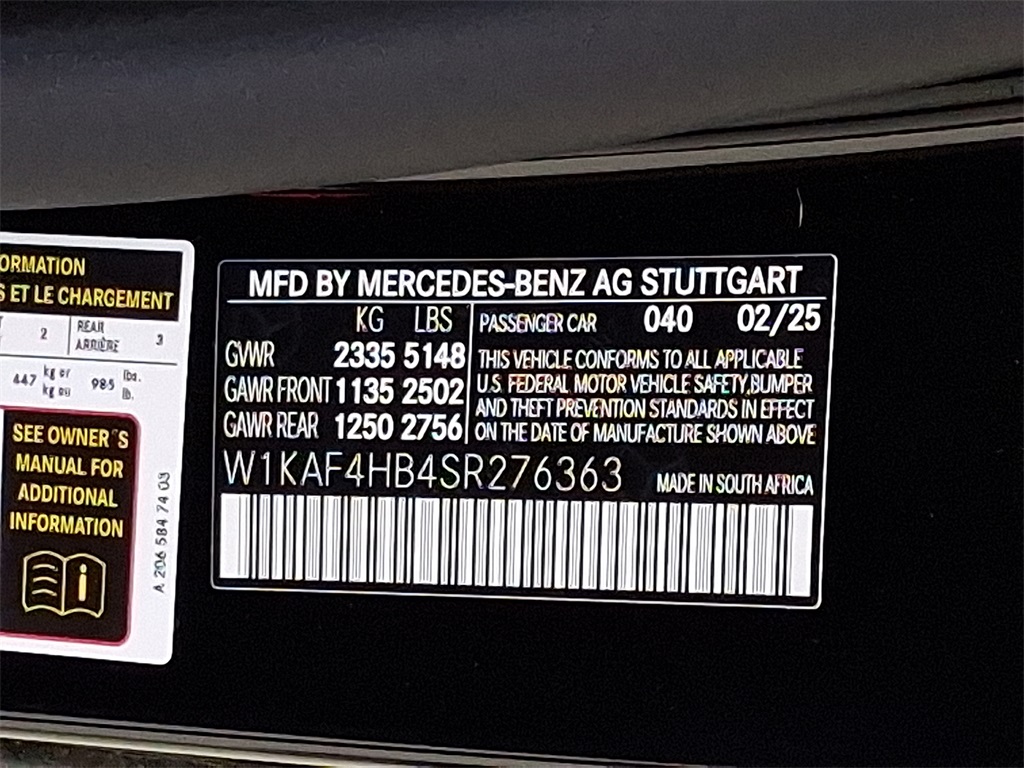 - VIN : W1KAF4HB4SR276363