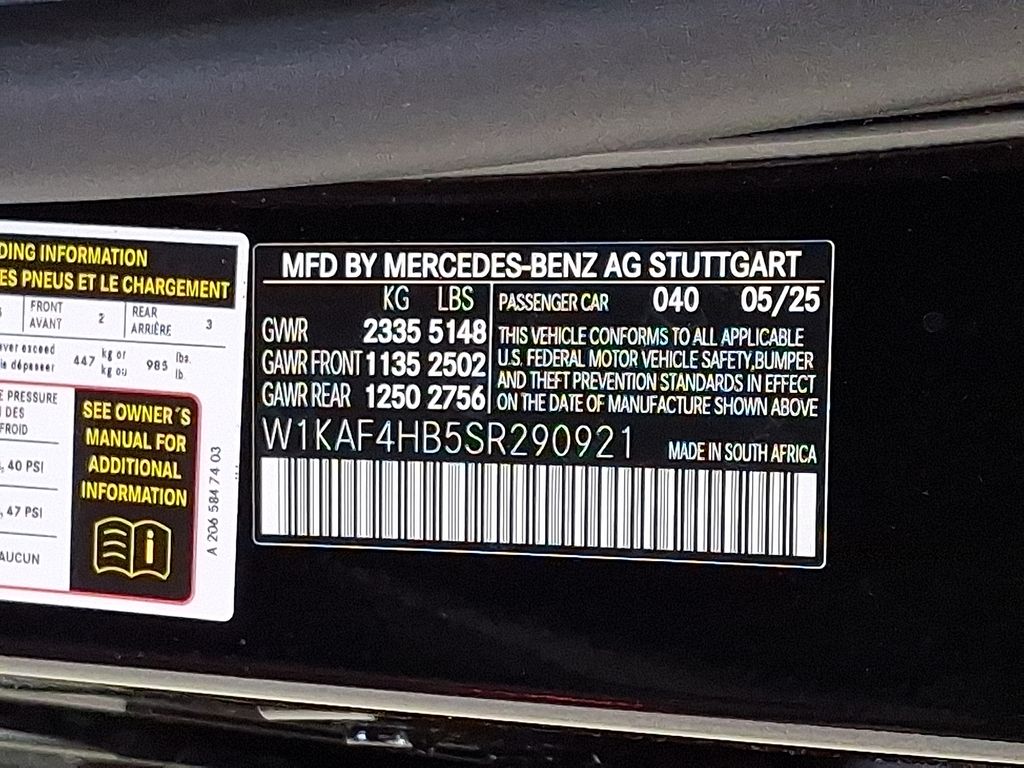 - VIN : W1KAF4HB5SR290921