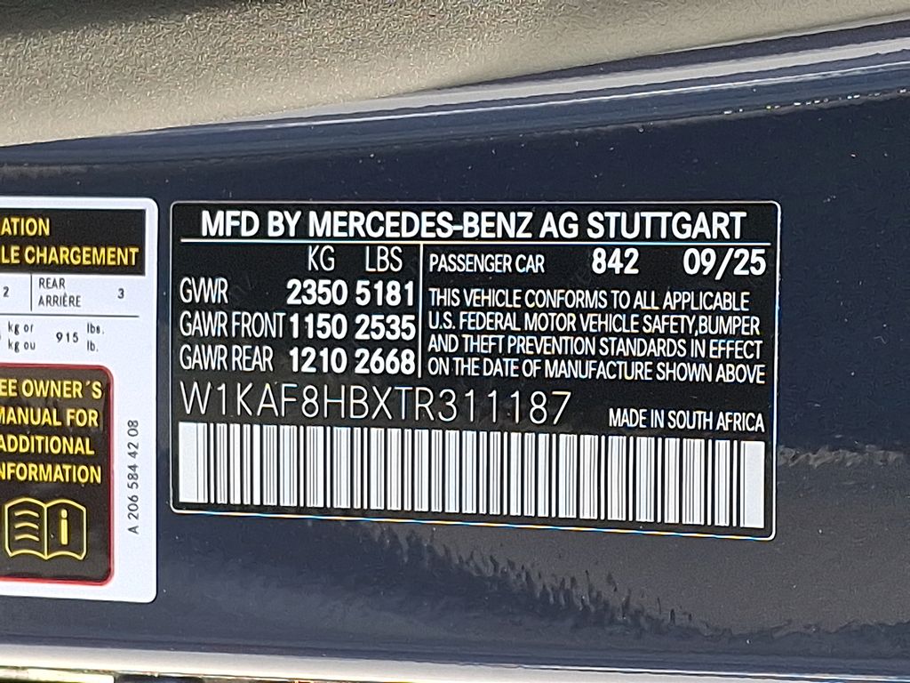 - VIN : W1KAF8HBXTR311187