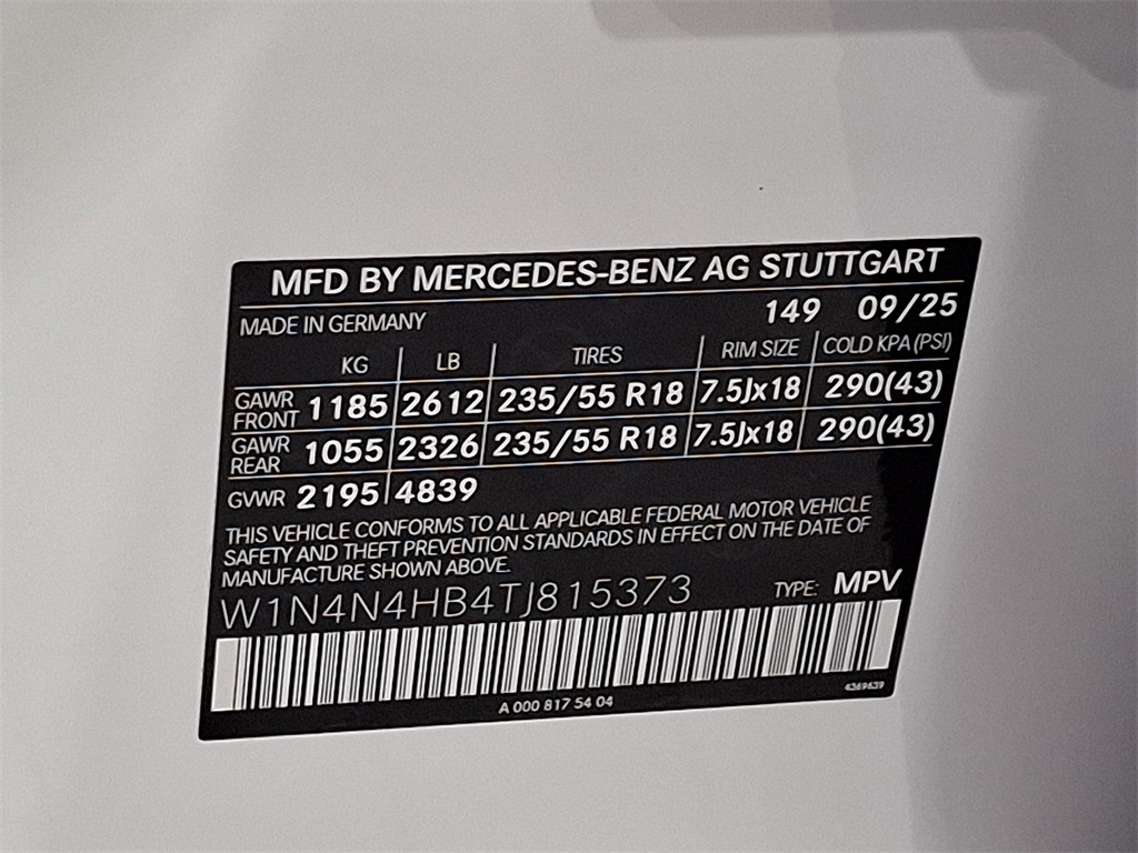 - VIN : W1N4N4HB4TJ815373