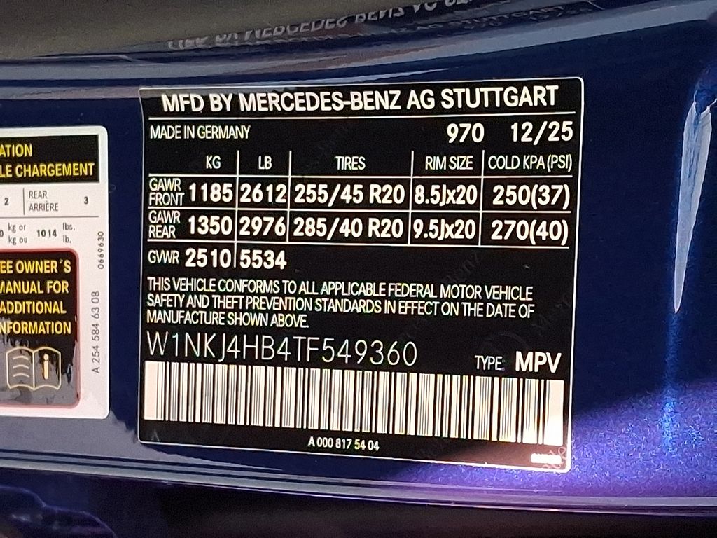 - VIN : W1NKJ4HB4TF549360