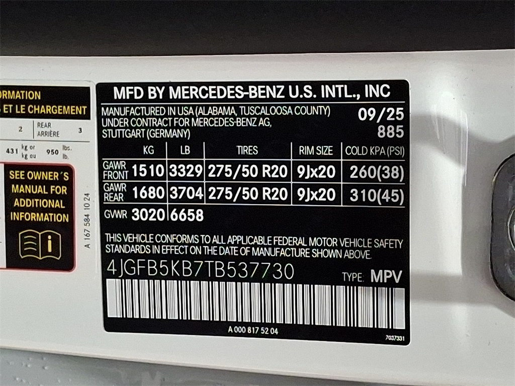 - VIN : 4JGFB5KB7TB537730