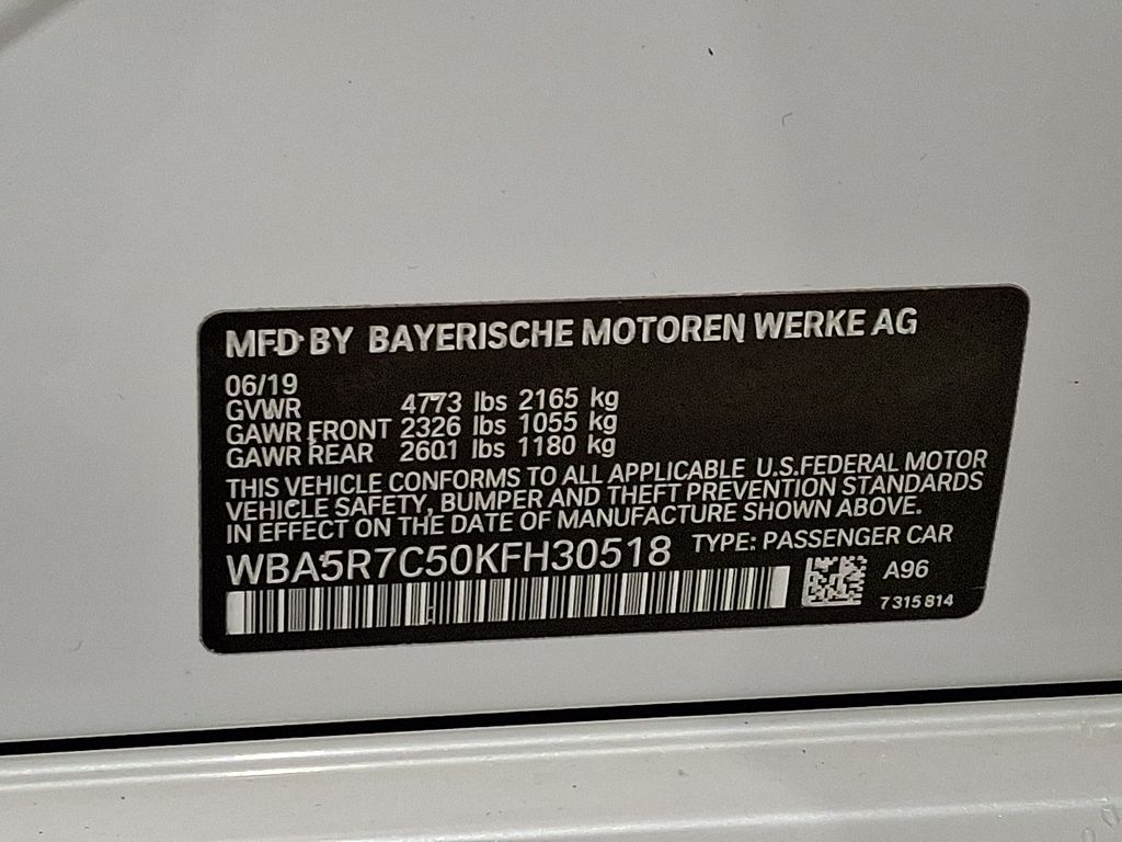 - VIN : WBA5R7C50KFH30518
