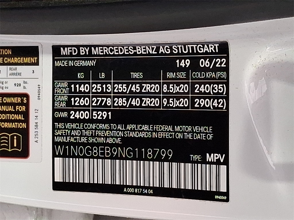 - VIN : W1N0G8EB9NG118799