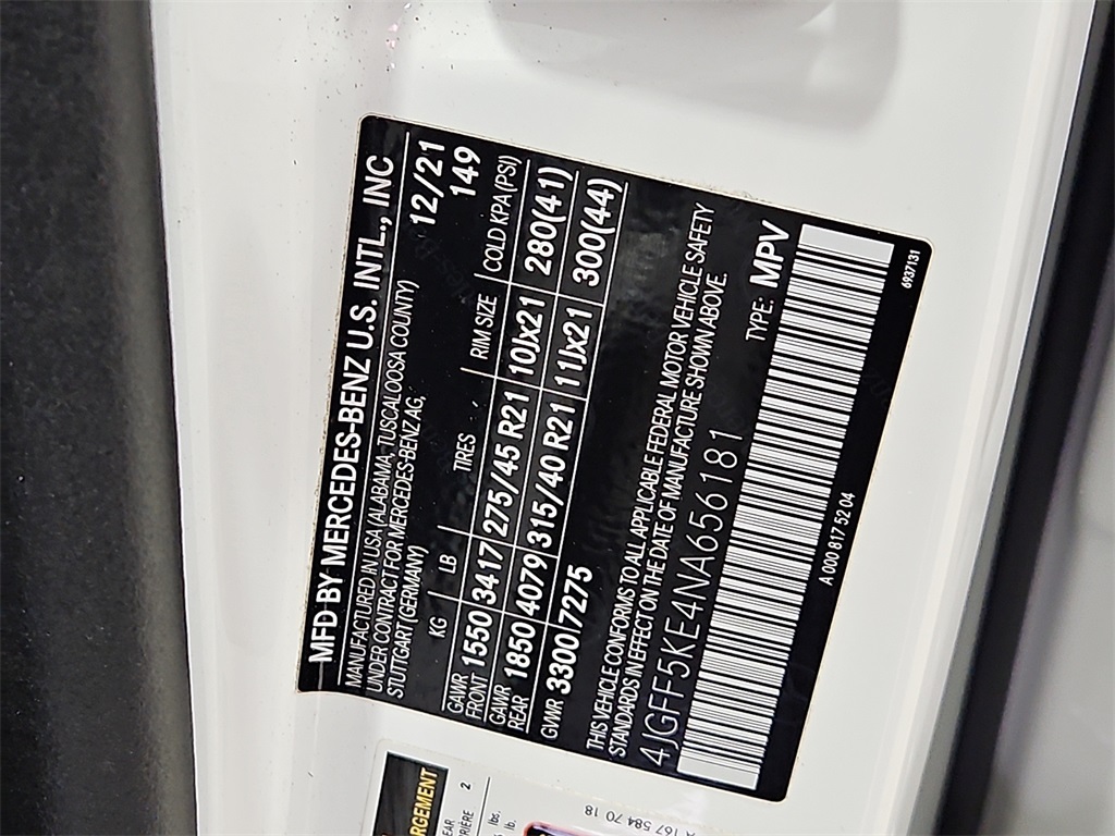 - VIN : 4JGFF5KE4NA656181