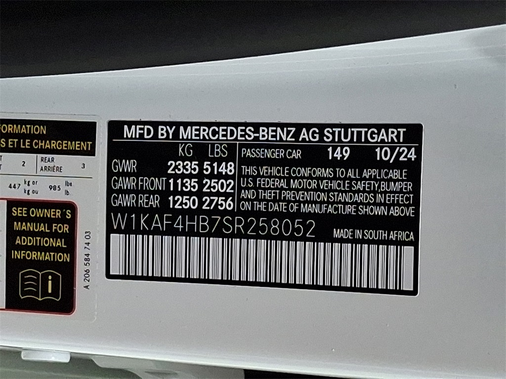 - VIN : W1KAF4HB7SR258052