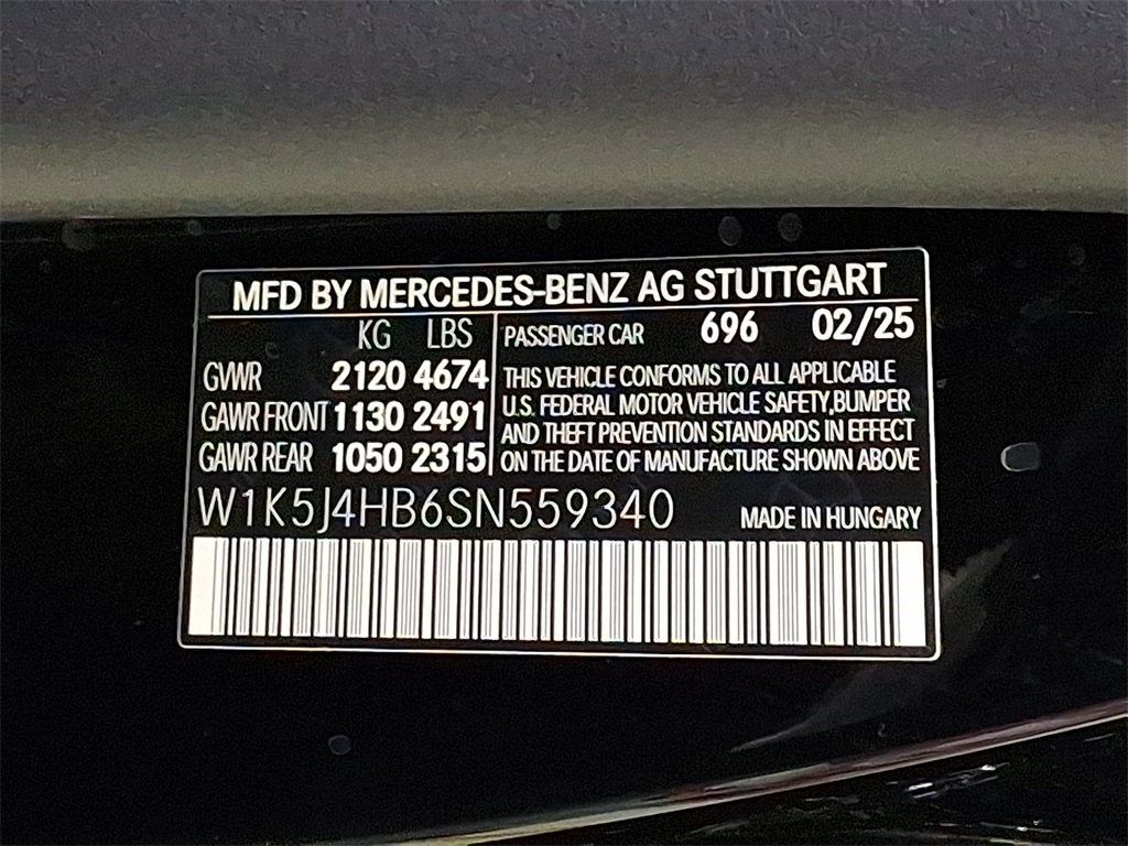 - VIN : W1K5J4HB6SN559340