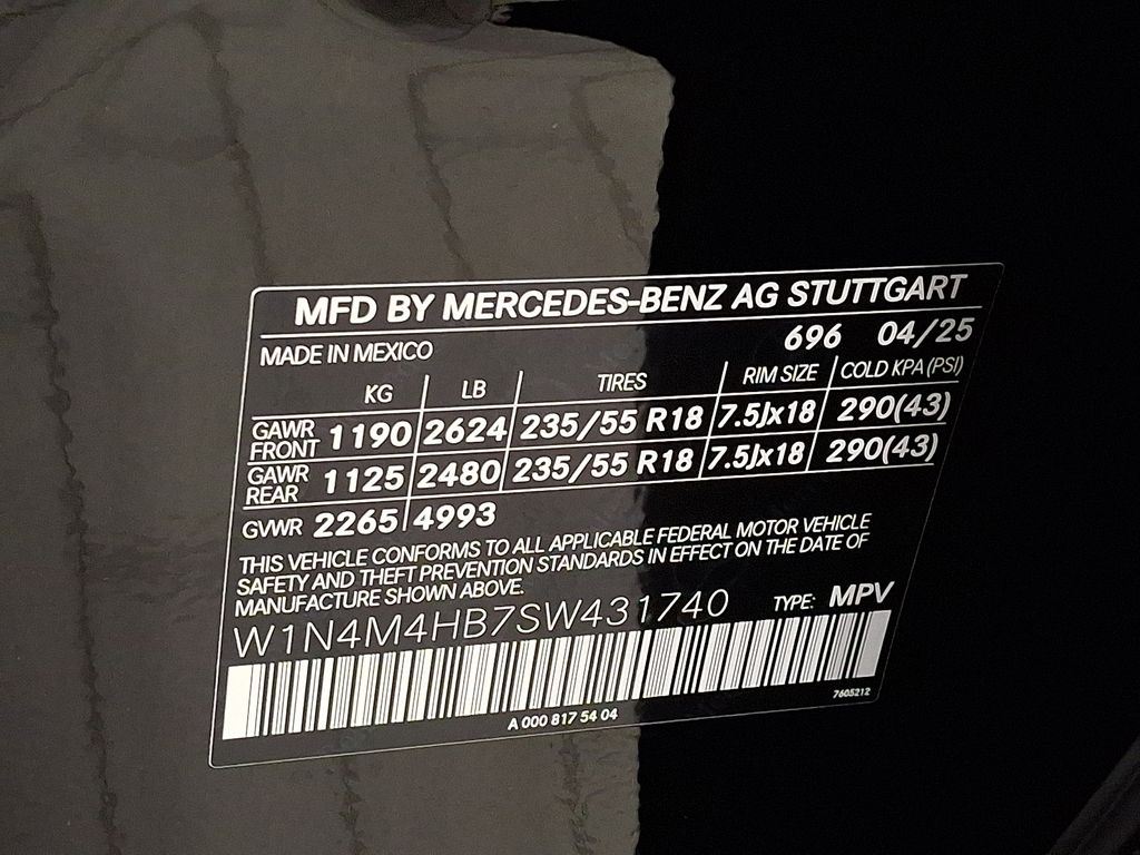 - VIN : W1N4M4HB7SW431740